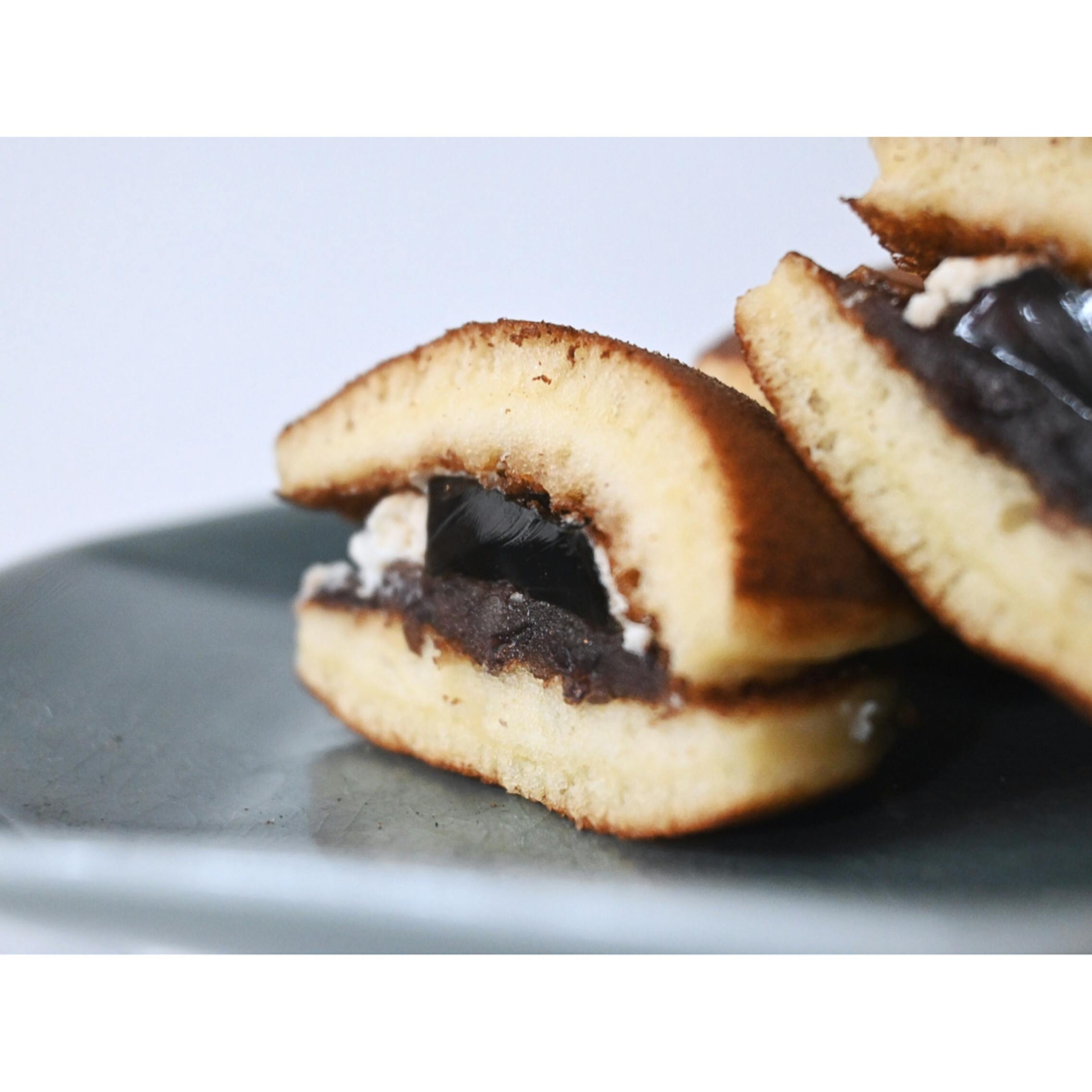 粒あんのどら焼きの中にクリームが入っています。店舗販売予定のノーマルタイプのクリームと抹茶クリームの2種類を5個ずつと、クラウドファンディング限定味(お楽しみ!)をプラス5つ入った物をお届け致します。