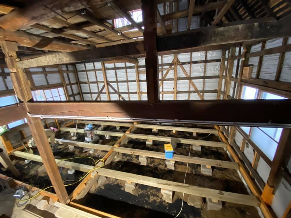 築86年の古民家の壁や床を取り払ってみると、丈夫な建物だとは言えそうにない状況でした。
