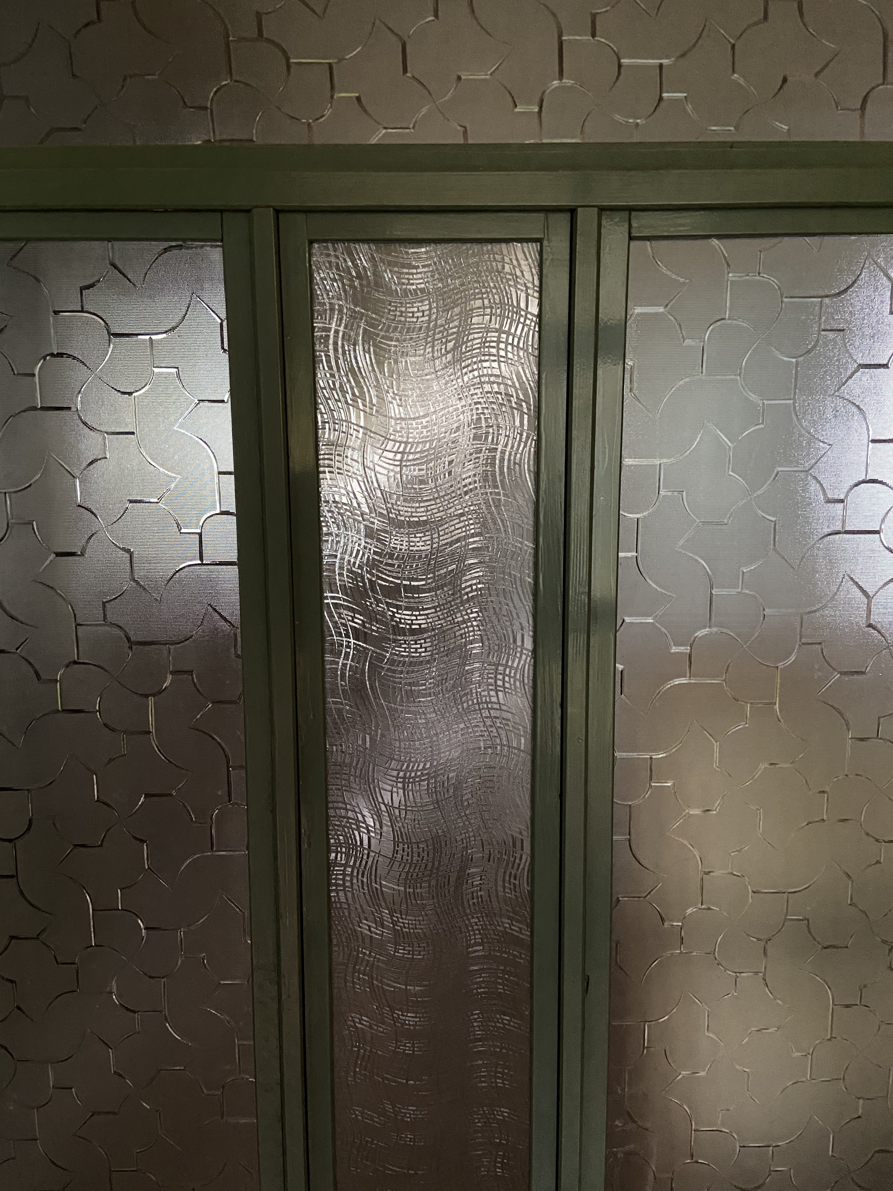 築86年ならではの物も見つかりました。戸にはめ込まれた板ガラスは、模様もさまざまで今では手に入りにくい昔の職人さんでしか作れない貴重なものです。