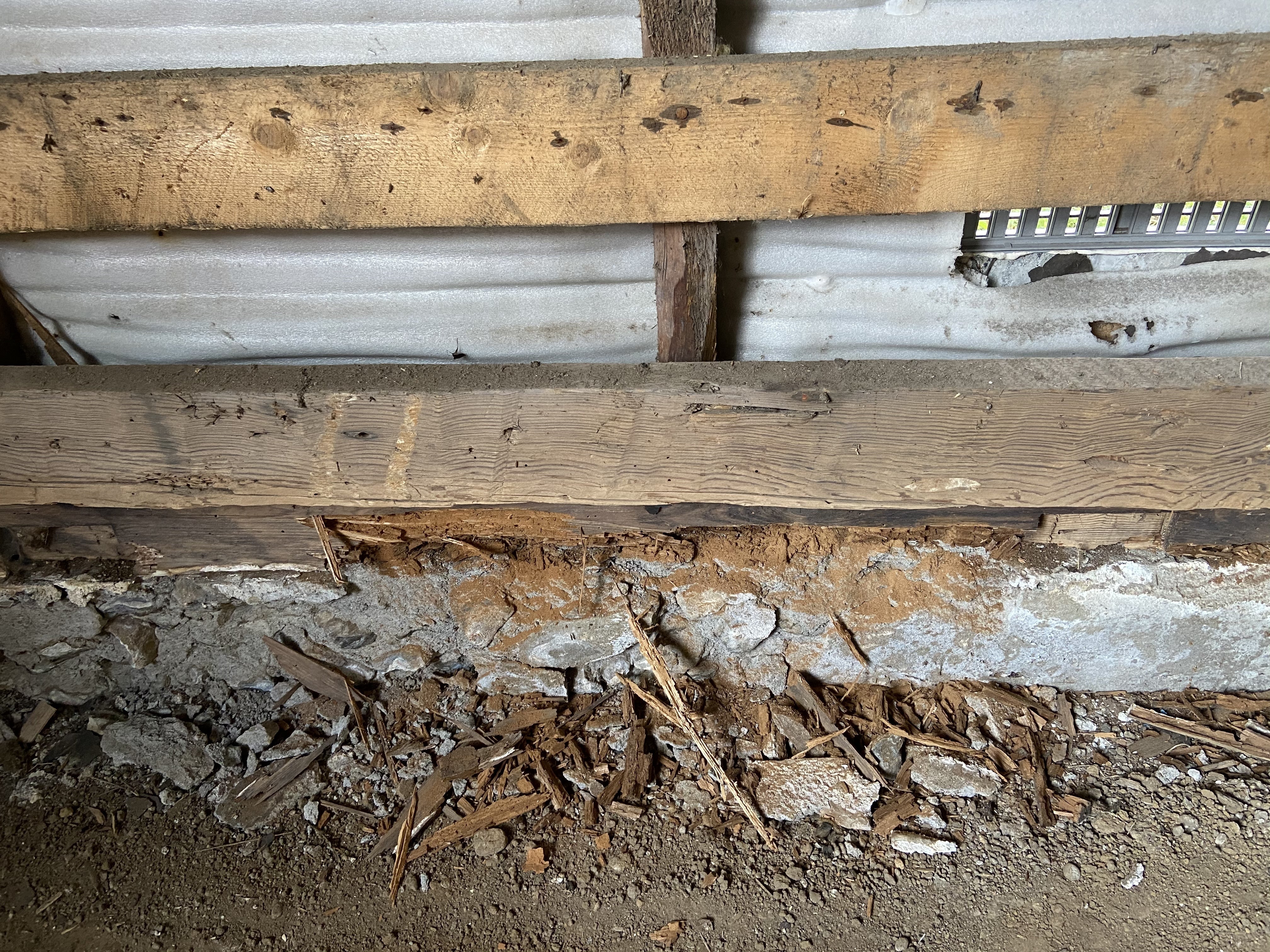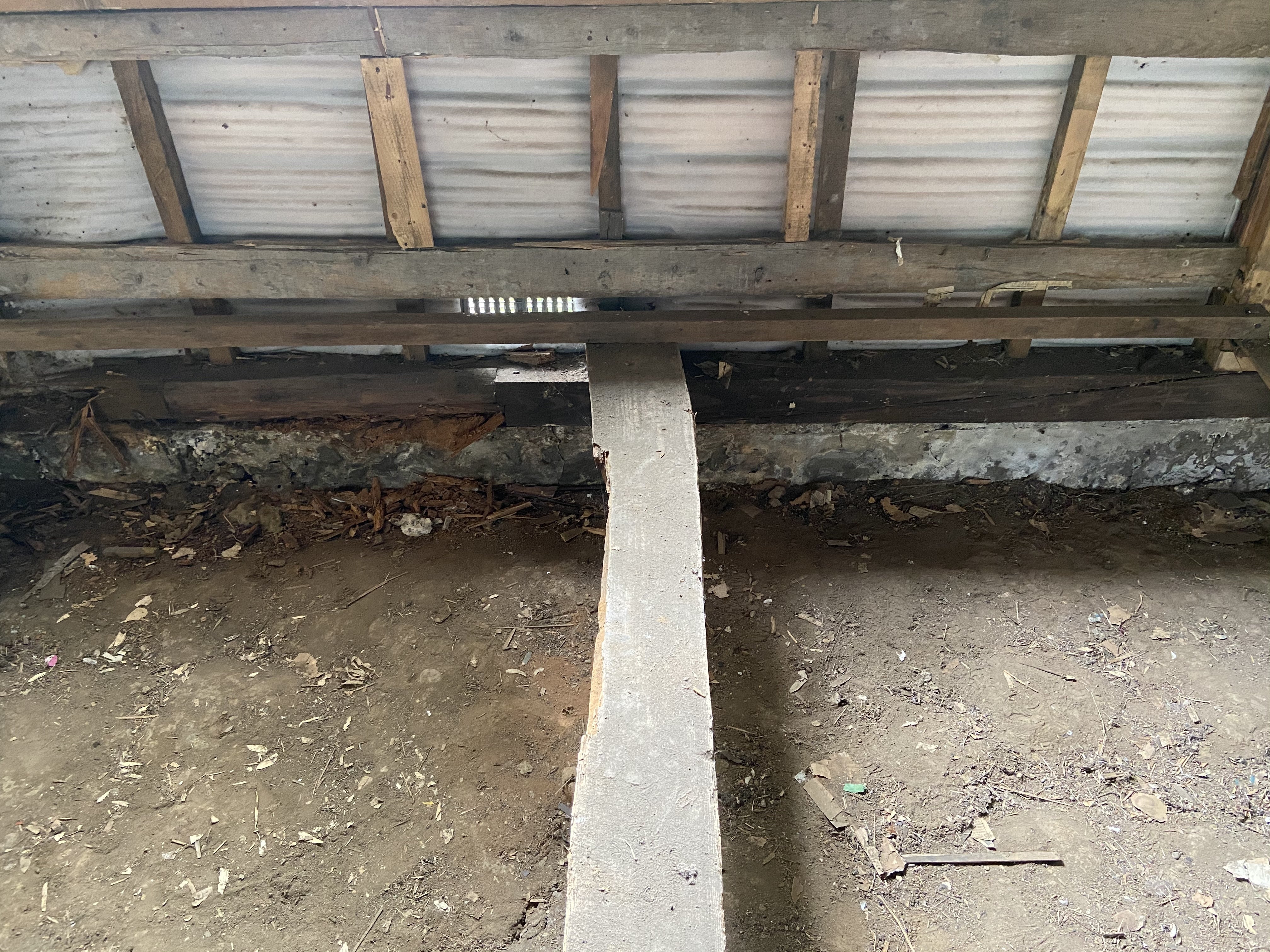 ピアノを入れるには頼りなく、基礎や土台は経年劣化により朽ちていました。