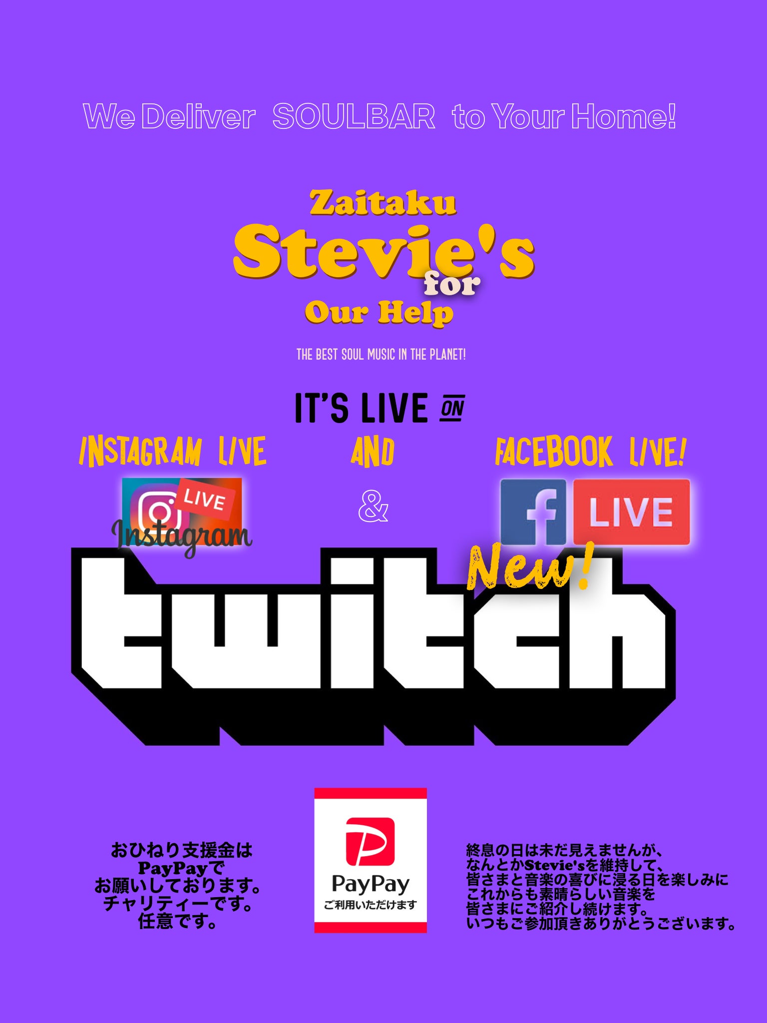 全国 そして海外からStevie’sを応援してくださる皆さまへ