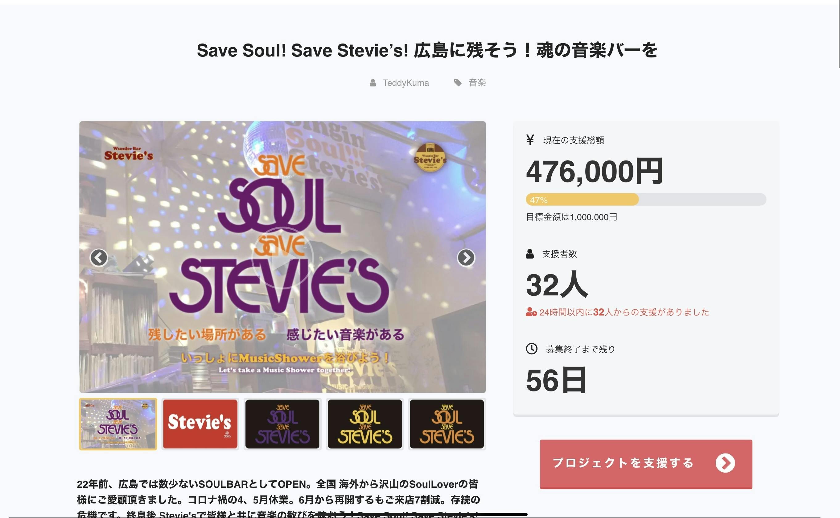 時間が経つにつれて思ったよりもたくさんの支援金にびっくりしております。