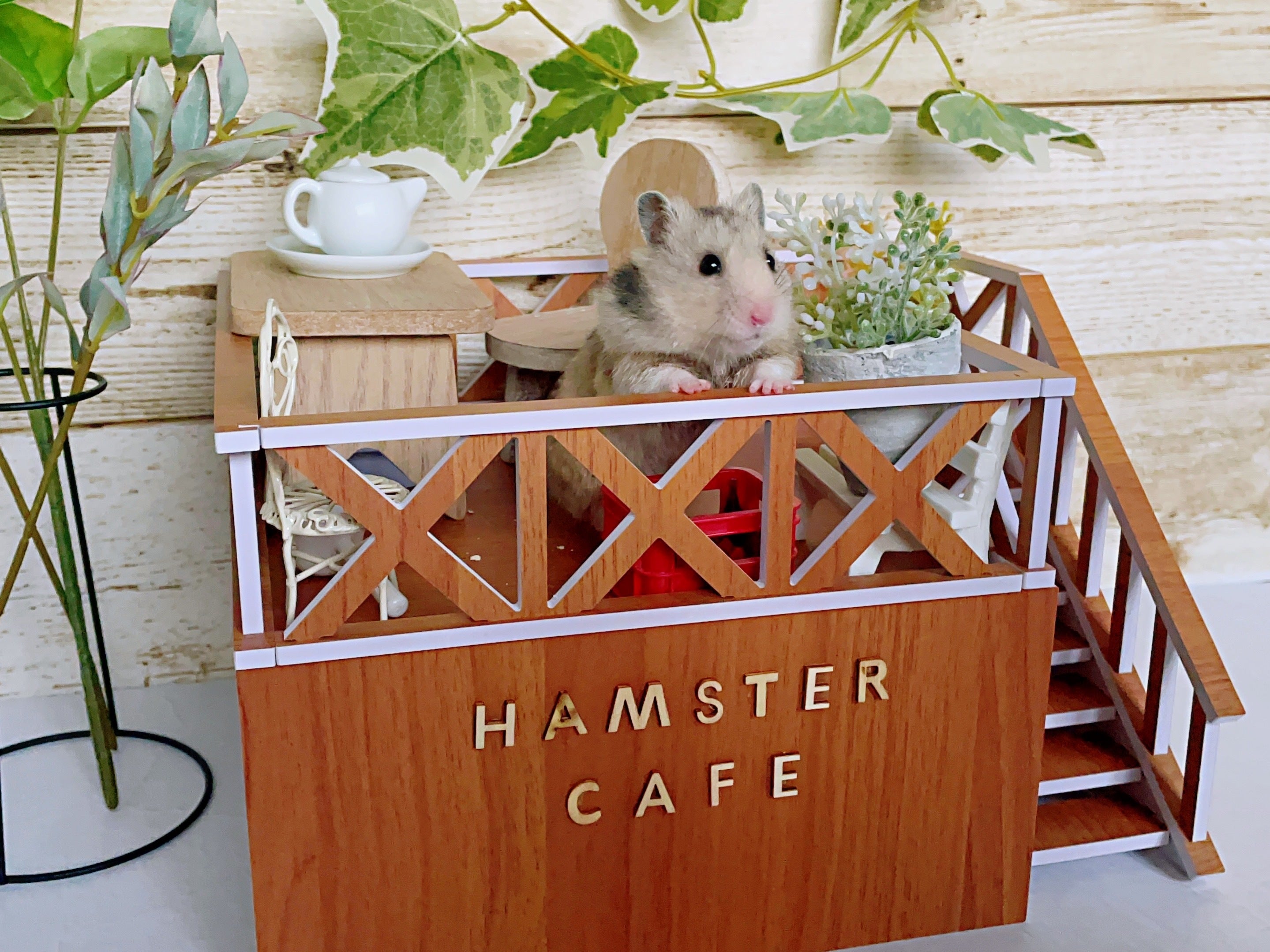 小物で飾り付けしてあげれば、とっても可愛いハムスターカフェの完成!