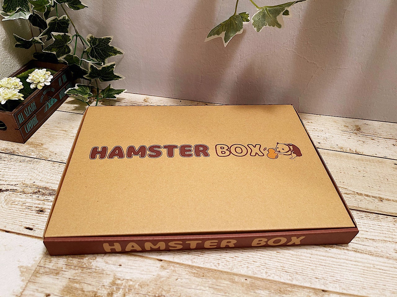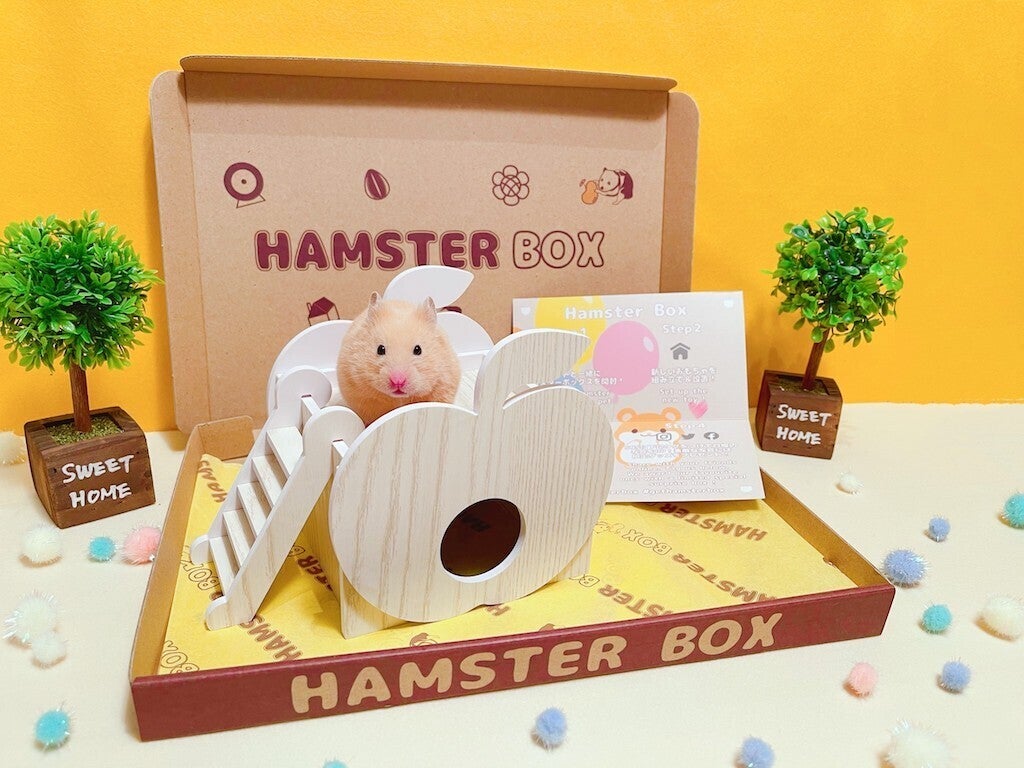 HAMSTER BOXは可愛い装飾のついた専用のBOXに入れてお届けします。自慢のペットちゃんと一緒に撮影して是非SNSにアップして下さい!