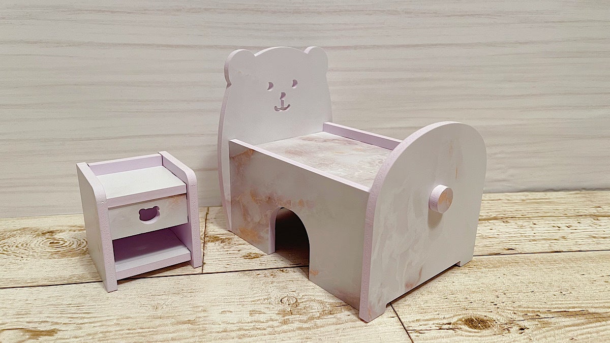 飾ってかわいいサイドテーブル付きのベッド型ハウスです。普段の住居として使えるのは勿論、装飾して撮影すればインスタ映え間違いなし!