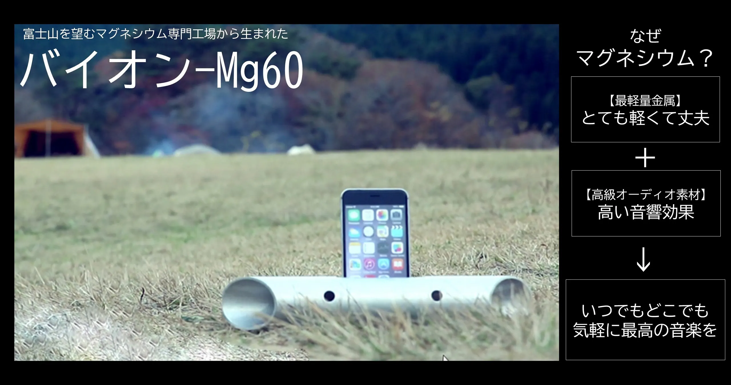 マグネシウムの高い振動吸収性、驚くほどの軽さと強度により、インドア/アウトドアを問わず、いつでもどこでも気軽に最高の音楽を楽しむことが出来ます。