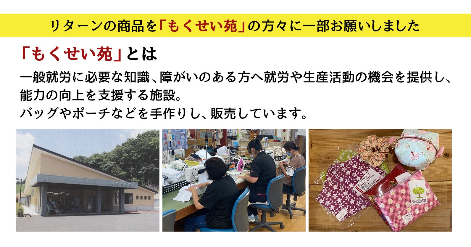 手作りのエコバッグです。一つ一つ施設の方達が作ってくださいます。