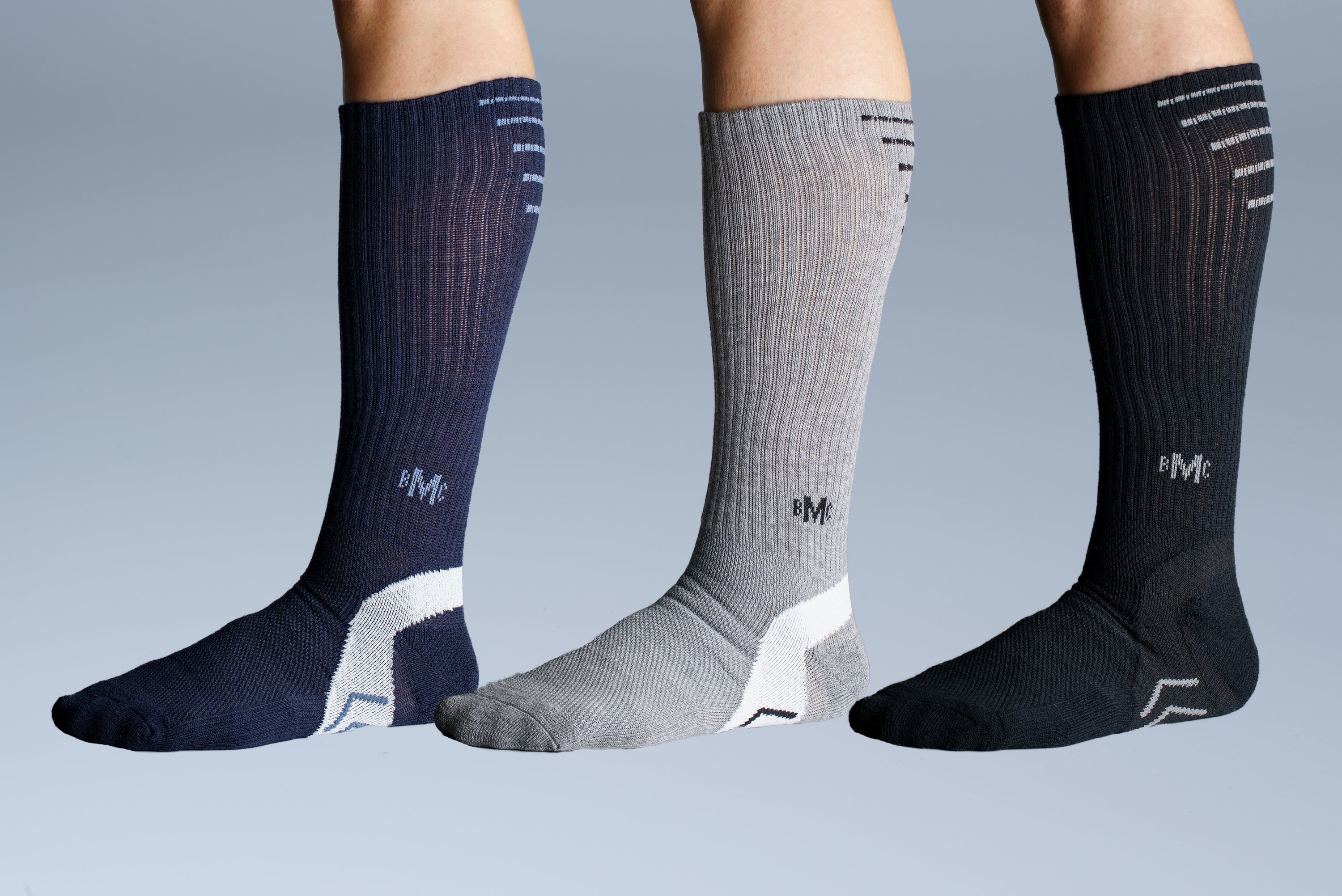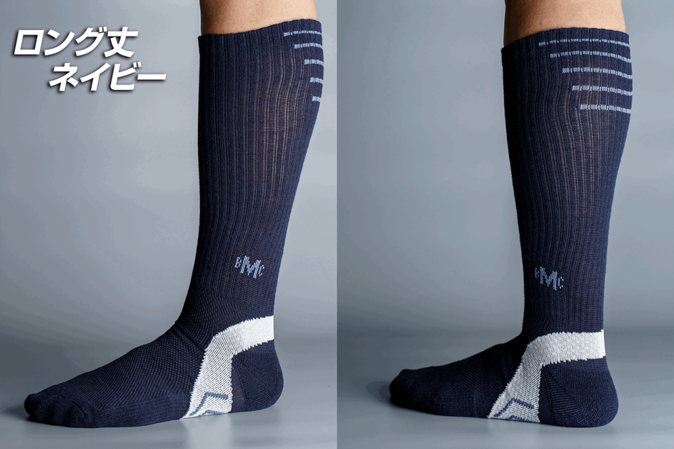 カジュアルにスポーツに適したミドル丈です。進化著しいスニーカーなどの軽い靴とこの【ノンストップ・ソックス】を組み合わせる事で、本当に履くと止まれなくなりますよ(笑)ここだけの話(冒頭で伝えていますが)・・・一応マラソンを嗜みます。日々のランニングでミドル丈【ノンストップ・ソックス】を履いてますが、本当に疲れないので永久に走れる感覚になりますよ(笑)ランナーの皆様にもおすすめです!