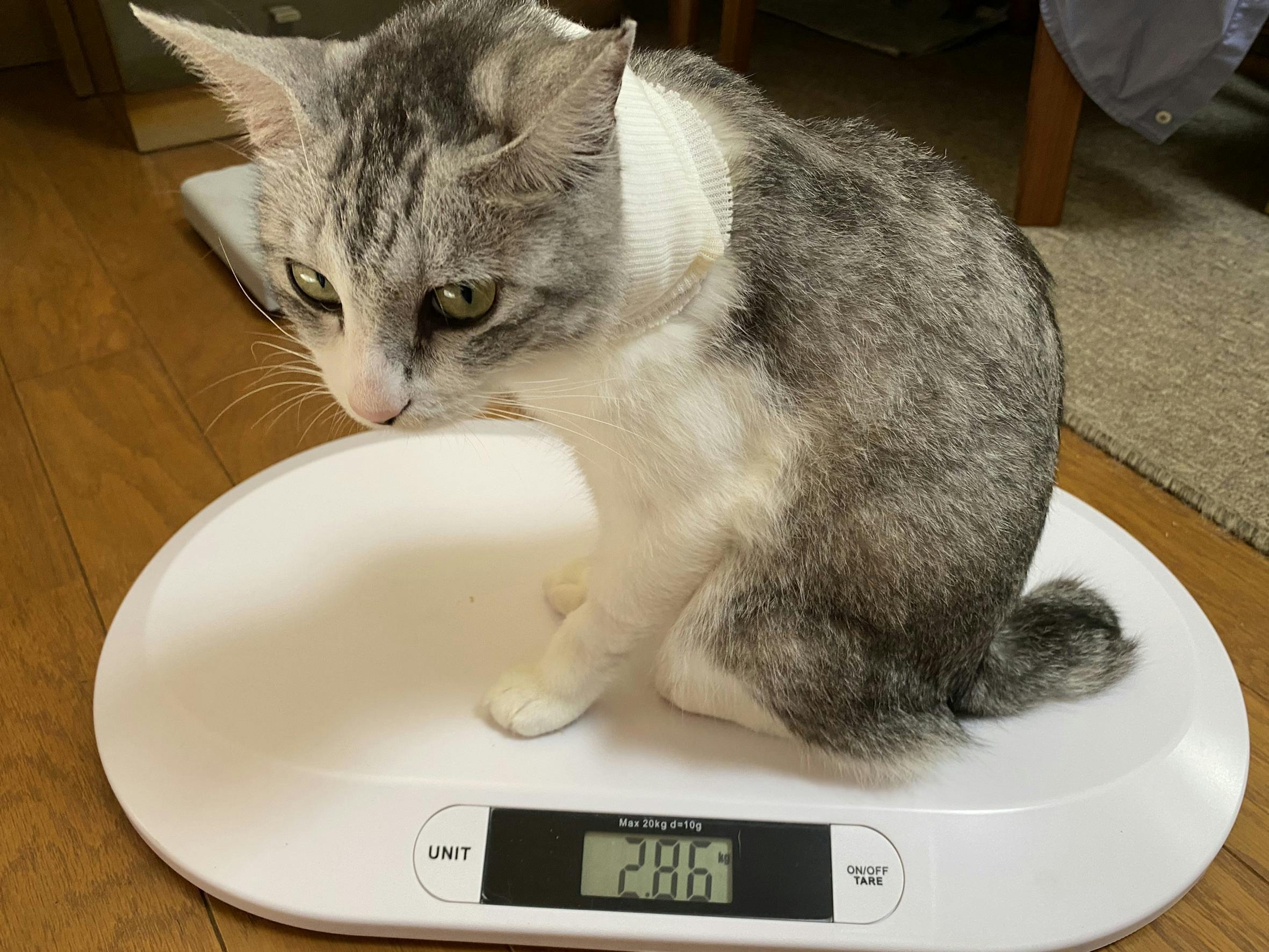 治療を始めた頃より体重は350g以上は増えており、ガリガリだった体もふっくらとしてきました。