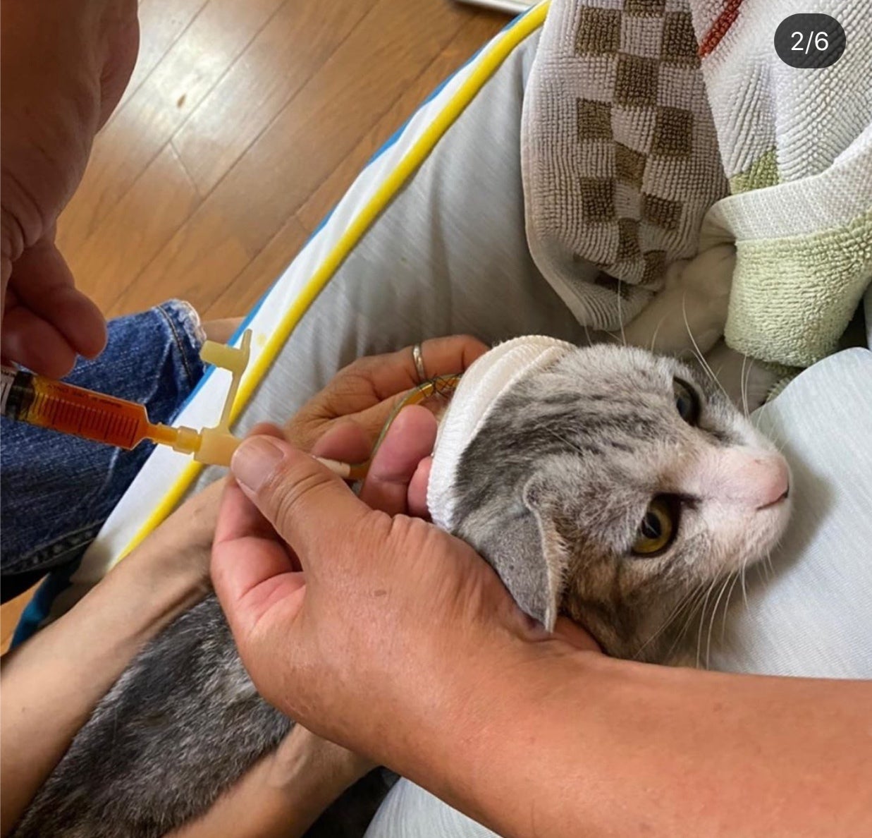 うずらは食道チューブからお薬投与もだいぶ慣れてきて大人しく頑張ってくれています。叔父も手慣れてきています。
