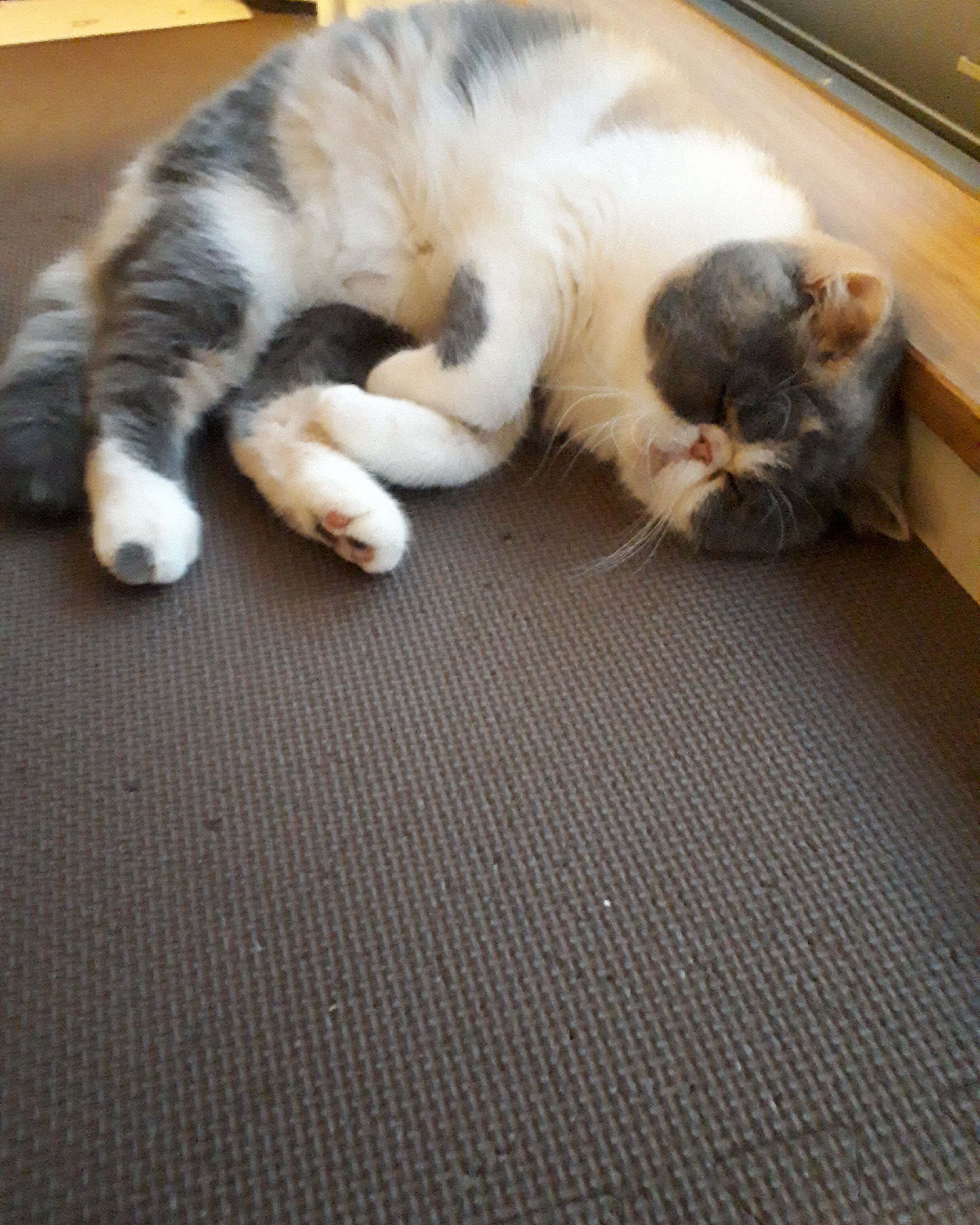 基本的に窓際や隅っこが好きなキャリコですが、昨日は久しぶりに天気が良かったので気持ちよさそうに寝ていました。