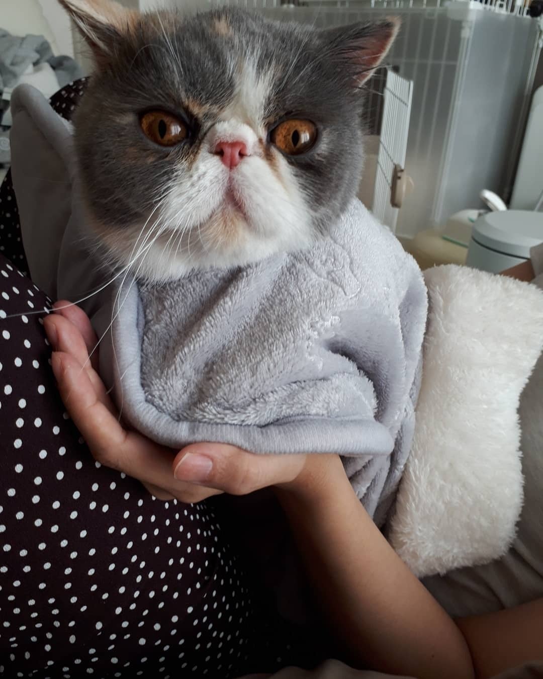 今日はブランケット風ベッドの穴からおはようキャリコです(^o^ゞ