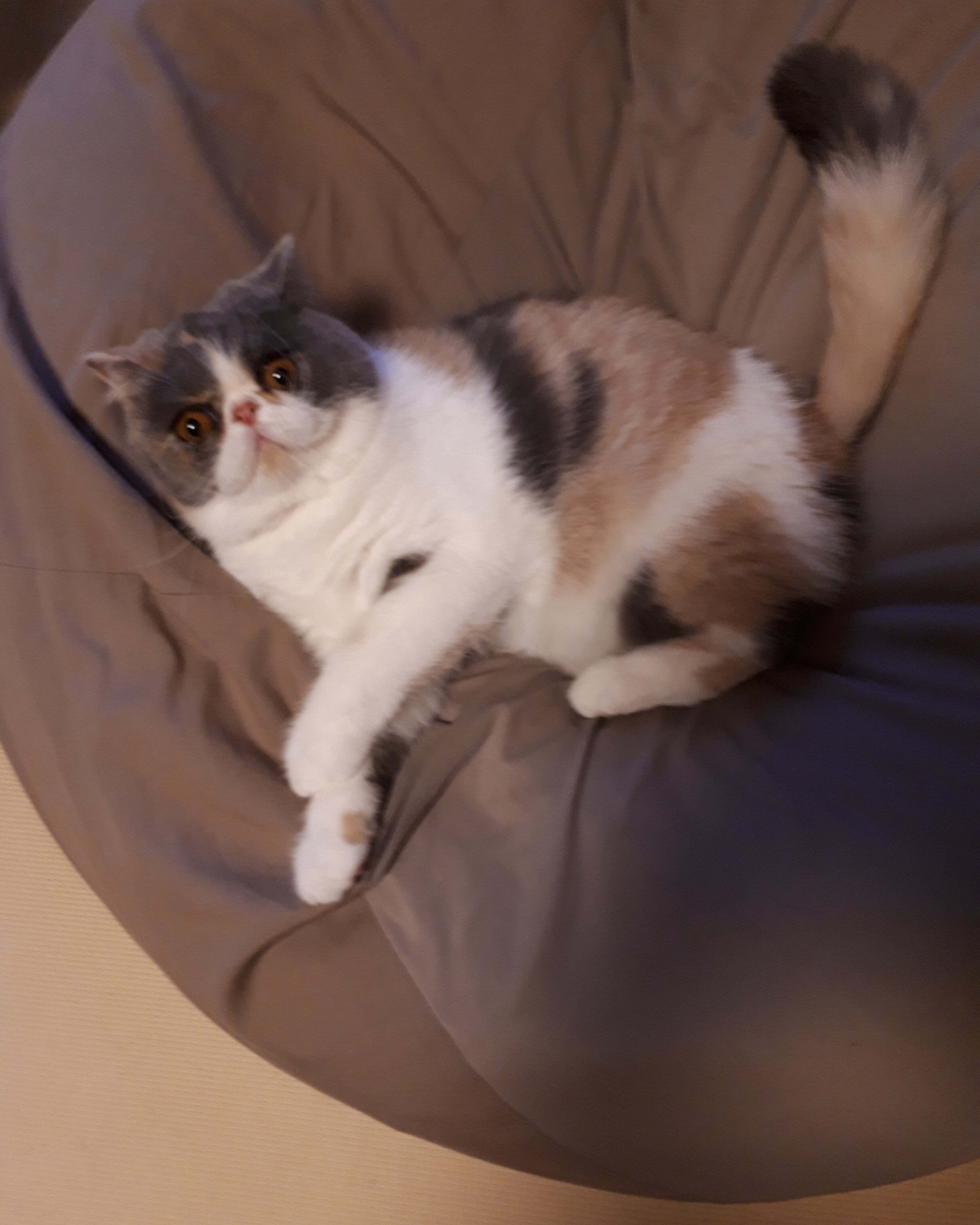 今日は人をダメにするソファーでくつろぐキャリコです。