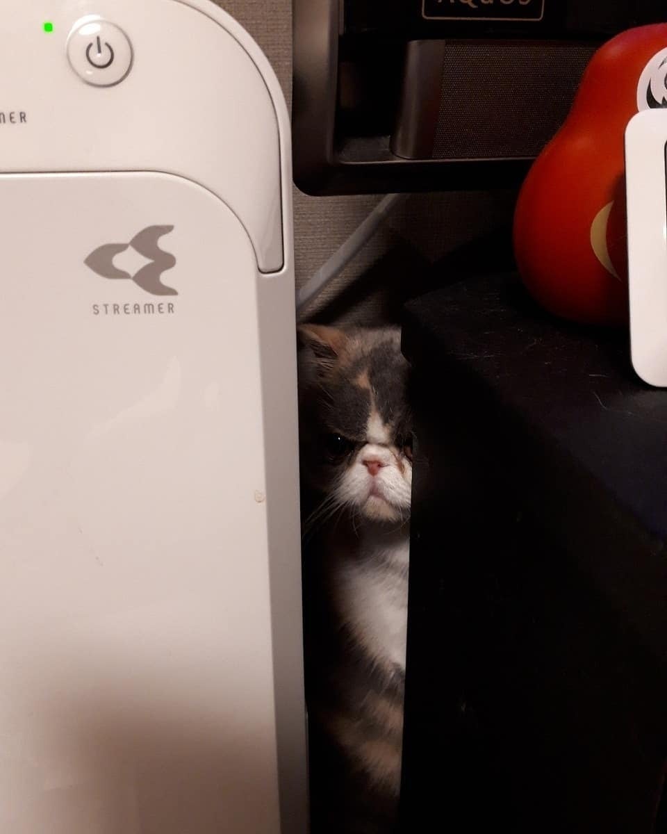 前回はカーテンから覗いていましたが、