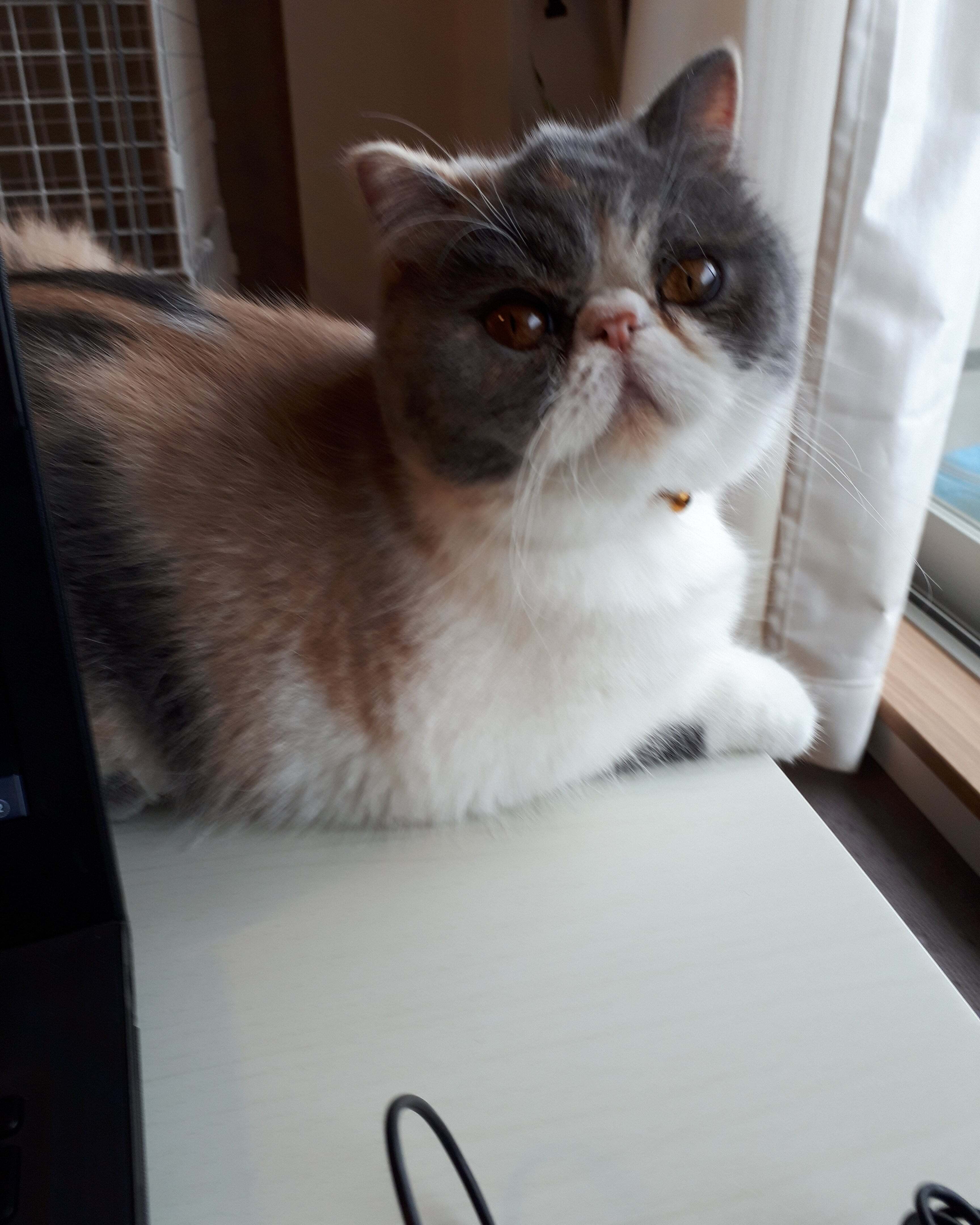 おはようございます。◇◇◇◇◇◇◇◇◇◇◇◇◇◇経過観察2日目体重 3560g食事 摂取良好排便 あり◇◇◇◇◇◇◇◇◇◇◇◇◇◇経過観察2日目が終了しました。今日はパソコンの隣で見守るキャリコです。机の上にはよく乗って、まったりしていることも多いのですが、パソコンを使っている時や何か大きい物が置いてある時は基本的に机には乗ってきません。この時はパソコンを使って支援者の方々にお礼のメールを送っている時でした。珍しくずっと隣に居たので『みんなありがとう』ってキャリコも一緒にお礼を言いたかったのかな。改めて、ありがとうございました。本日も寒いですが、張り切って参りましょう。
