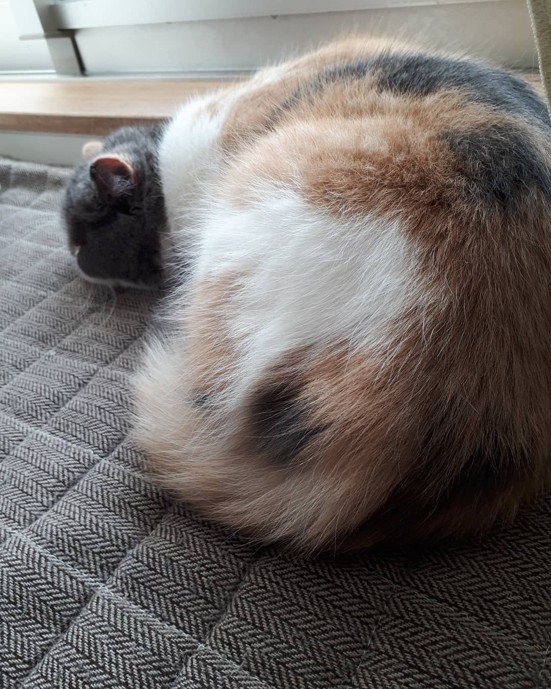 おはようございます(^o^ゞ◇◇◇◇◇◇◇◇◇◇◇◇◇経過観察71日目体重 3,635g食事 摂取良好排便 あり◇◇◇◇◇◇◇◇◇◇◇◇◇経過観察71日目が終了しました。クリスマスも終わってしまいましたね。今年は例年と違って、外食等は控えた方も多いと思いますが、また違った形で楽しめましたよね~今年も残りわずかですが、体調崩さずに皆様が元気よく年越しできますように♪ご覧の通り、キャリコは日向ぼっこして気持ち良さそうです(^o^ゞなんかカタツムリみたい(笑)