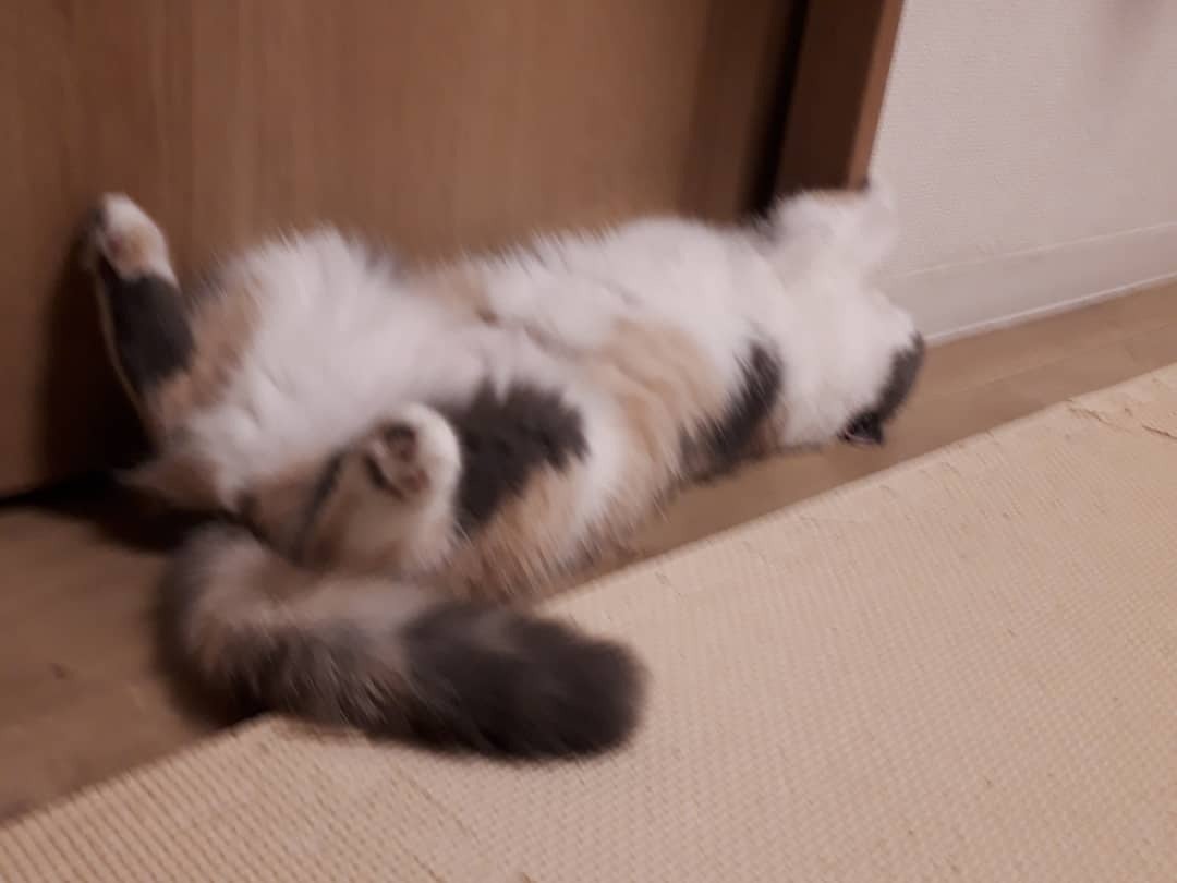 おはようございます(^o^ゞ◇◇◇◇◇◇◇◇◇◇◇◇◇経過観察66日目体重 計測なし食事 摂取良好排便 あり◇◇◇◇◇◇◇◇◇◇◇◇◇経過観察66日目が終了しました。今日はキャップが寝室に入ってしまい、一生懸命に取ろうとしているキャリコです♪以前、寝室にキャップをたくさん入れてしまうお話をさせて頂きましたが、まさに入れてしまった瞬間。おーい、そんなに身体伸ばしても取れないよ(笑)さぁ、今年も残り二週間をきりました。体調管理をしっかりして、無事に年末を迎えられますように♪