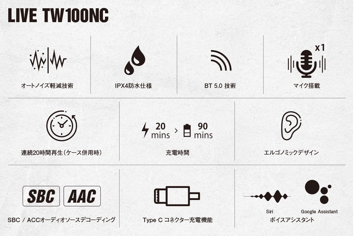 1)アクティブノイズキャンセリングワイヤレスイヤホン LIVE TW100NC