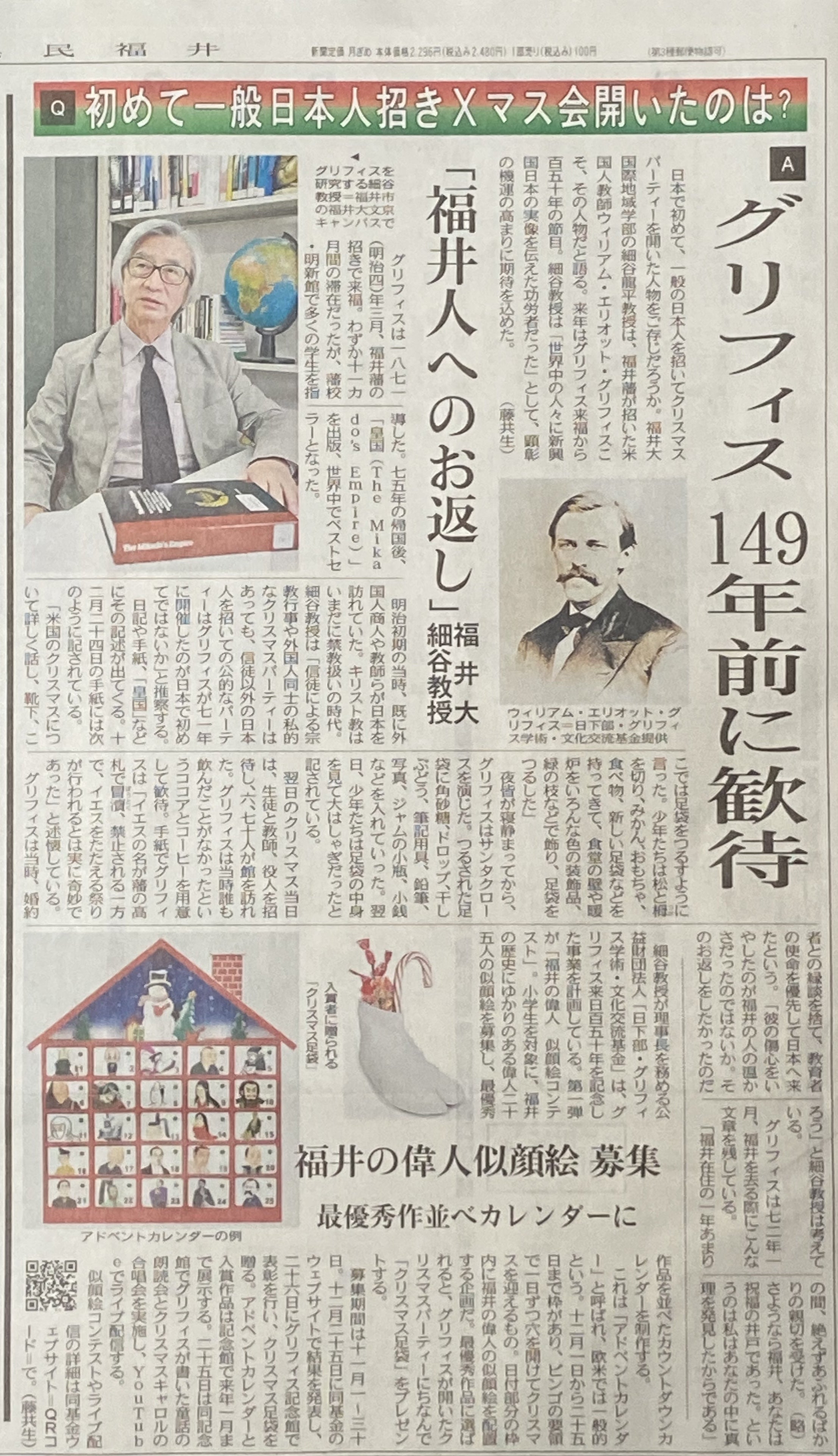 日本で初めて公のクリスマスパーティーを福井でやった時のグリフィスはどんな心境だったのであろうかなど語らせてもらいました。