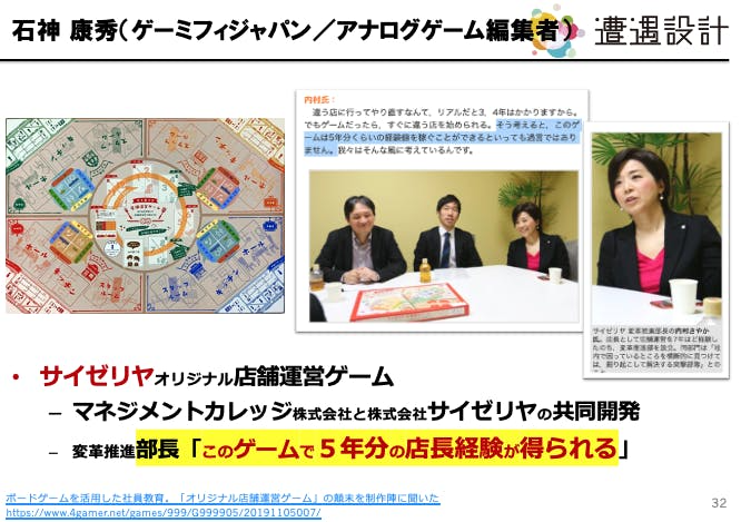 こちらはサイゼリヤのオリジナル店舗ゲーム/ワードスナイパーで有名な石神康秀氏にご担当いただき、皆様の思いをどのように表現し、ゲームに落とし込むか講義します。