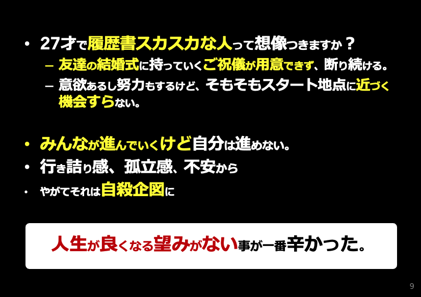 というループにはまっていて、自分の人生に希望を見いだせなかったのです。