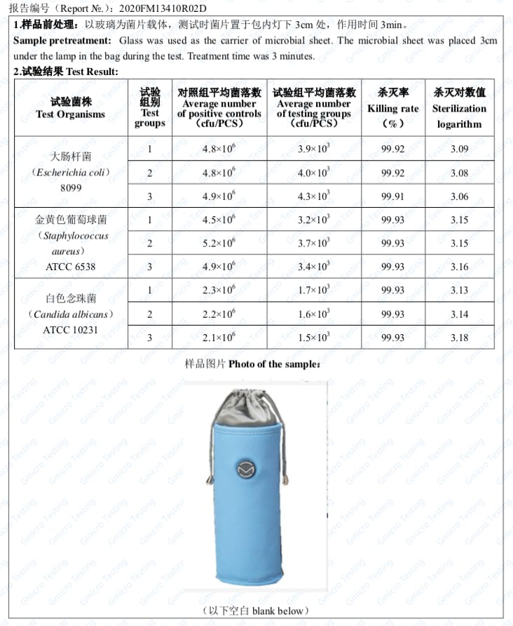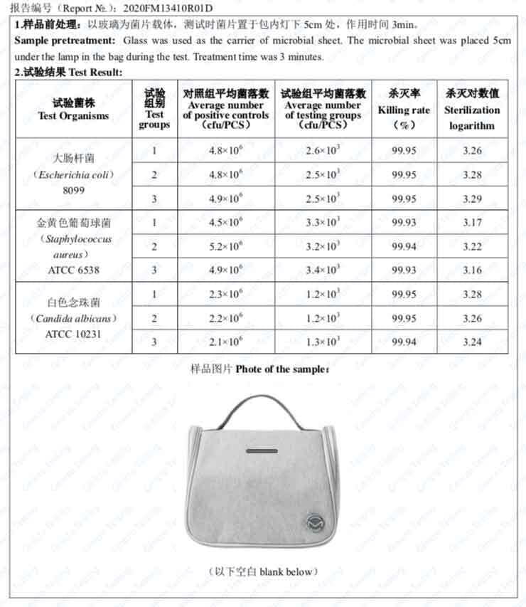 2020年5月に第三者テスト機関での証明テストを行い3分で99.9%以上の除菌効果があると最新の効果証明書テストリポートを取得しました!