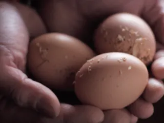 岩手県一関の館ヶ森アーク牧場「昔たまご」は、広大な牧場の大自然の中を元気に走り回り育った鶏が産んだ有精卵です。効率を優先したケージ飼いの鶏が産んだ卵(無精卵)とは違い、のびのびとした環境で仲良く育てられた雄鶏と雌鶏が恋をして産んだ卵です。