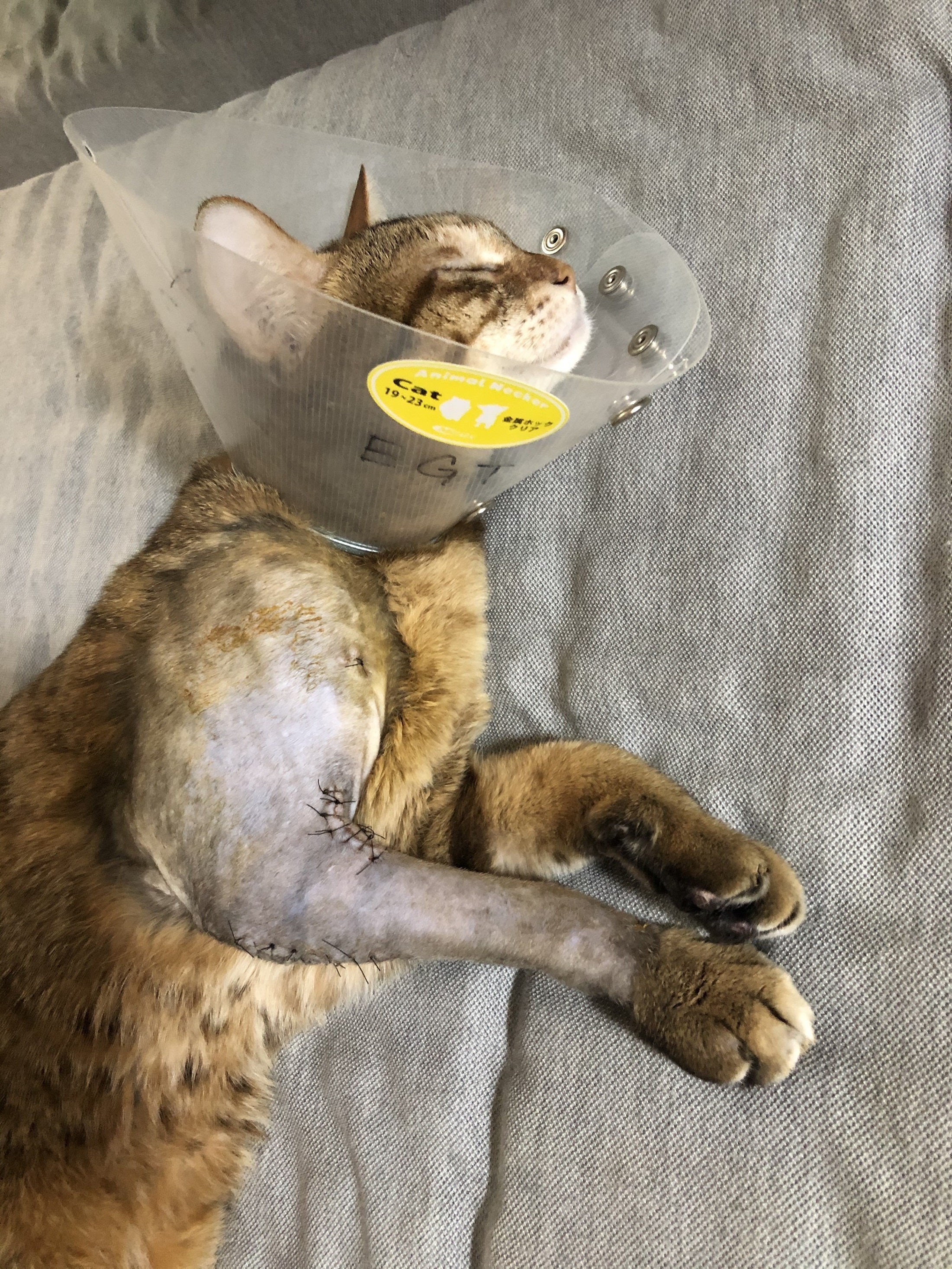 チョリの右前肢について、当初医師から「このままでも命に別状はない。だが、一生の障害を負うことになる。手術をすれば、多少の後遺症(少し歩き方がぎこちない等)や関節炎のリスクはあるが、ちゃんと歩けるようになる」と聞かされ、私は「救える手があるのにしないのは一生後悔する」と感じ、手術をお願いしました。