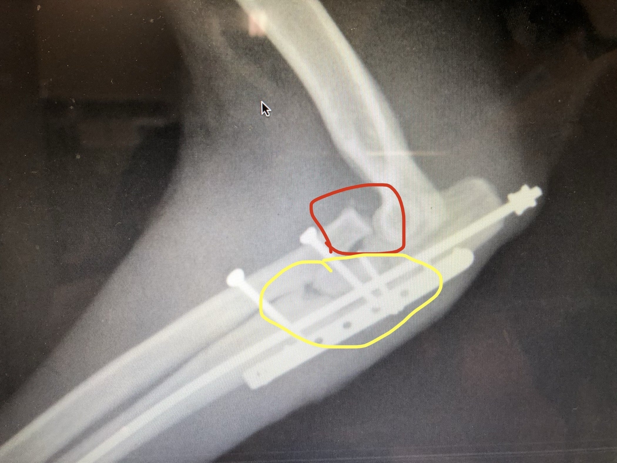 同年08月10日 チョリの再手術実施。右前肢前方から追加のスクリューを取り付け。無事終了。