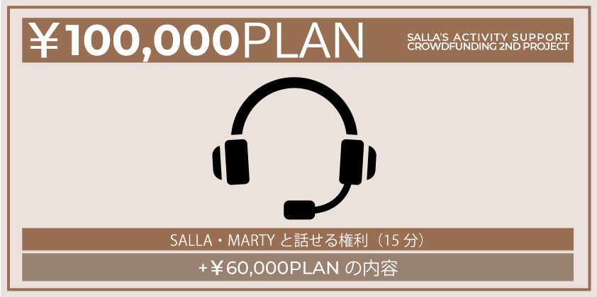 ・参加クレジット・ボイスドラマ・非公開漫画動画・カバー楽曲アルバムCD Vol.2・オリジナル描き下ろし漫画 ・オリジナルタンブラー・オリジナルラバーコースター ・SALLA.R Tシャツ・オリジナルブランケット・オリジナルネックウォーマー・オリジナルパーカー・オリジナルエコバッグ・直筆サイン・SALLA/MARTYと話せる権利(15分)