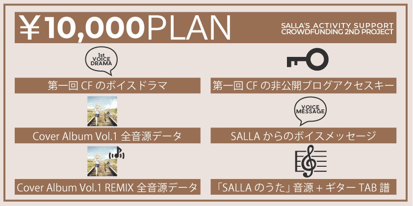 ・第一回CFのボイスドラマ・第一回CFの非公開ブログアクセスキー・SALLA.R Cover Album Vol.1 全音源データ・SALLAからのボイスメッセージ・SALLA.R Cover Album Vol.1 REMIXバージョン全音源データ・「SALLAのうた」音源データ + ギターTAB譜データ