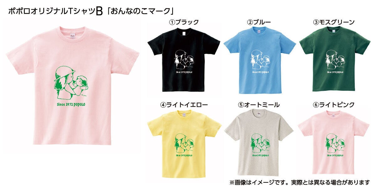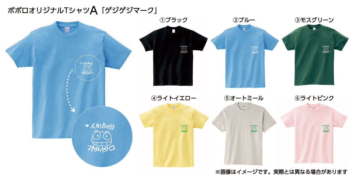 ポポロのロゴマーク「ゲジゲジマーク」と「おんなのこマーク」を使ったオリジナルTシャツです。