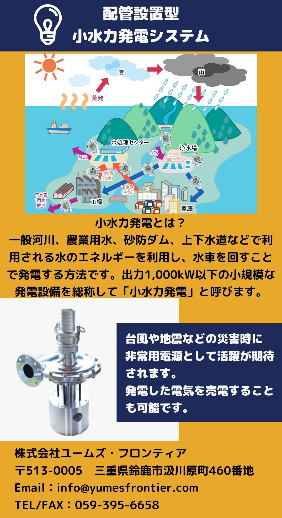 改良を重ね厳しい試験を通った未来のマイクロ水力発電を普及させるためにも、ご協力の程よろしくお願いいたします。