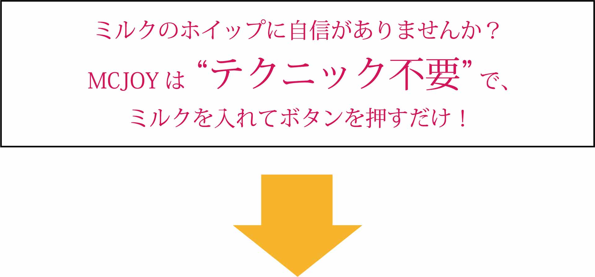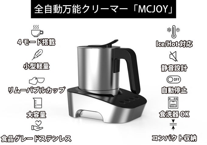 MCJOYとは、HOT・ICE対応の濃厚なホイップミルクを愉しめる、静音コンパクトな全自動万能ミルククリーマーです。