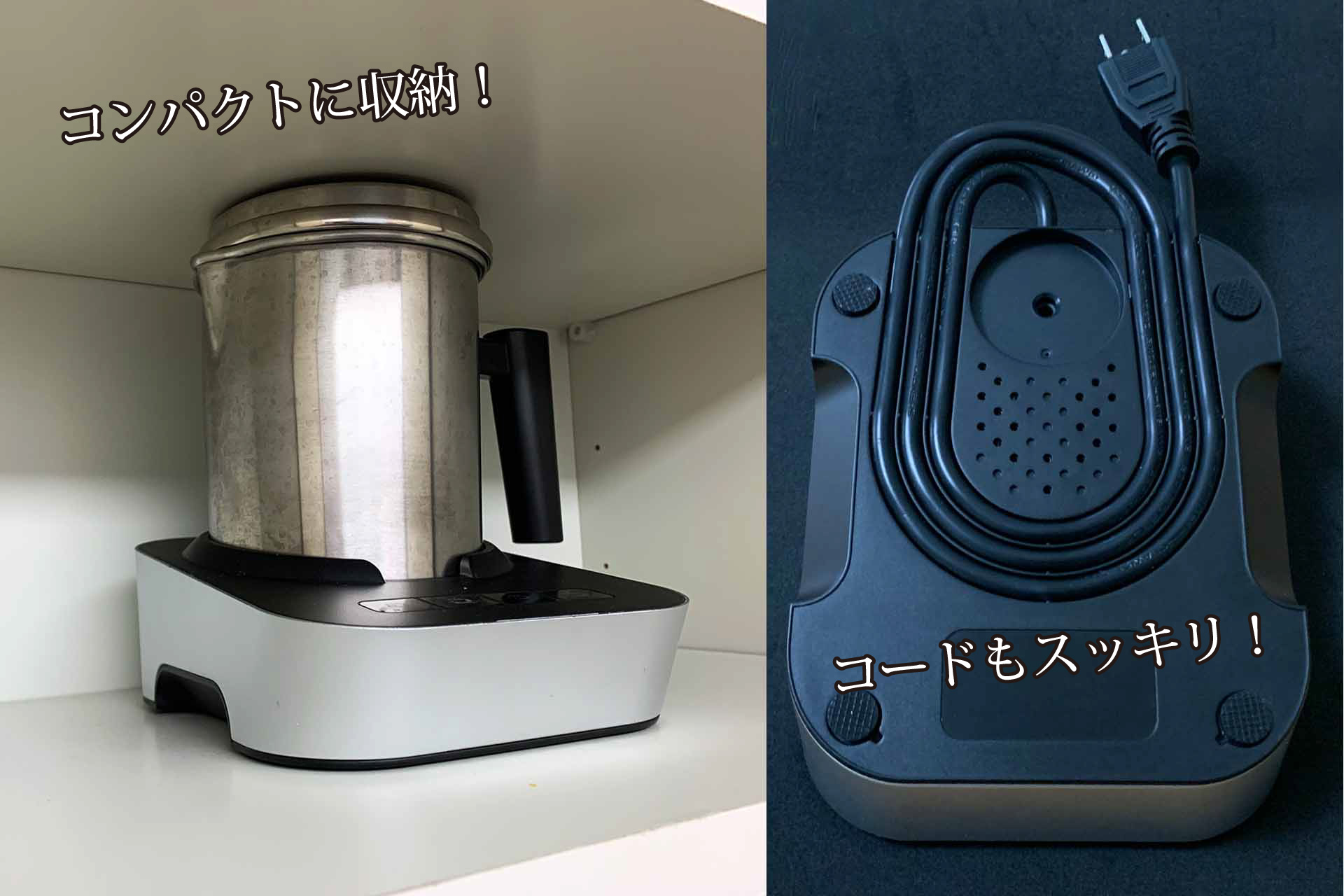 本体をとてもコンパクトにすることで、ご家庭の食器棚に簡単に収納する事が出来ます。