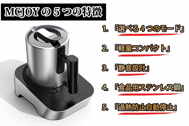MCJOYは、食品用グレードのステンレスを採用して安全性に配慮した設計です。