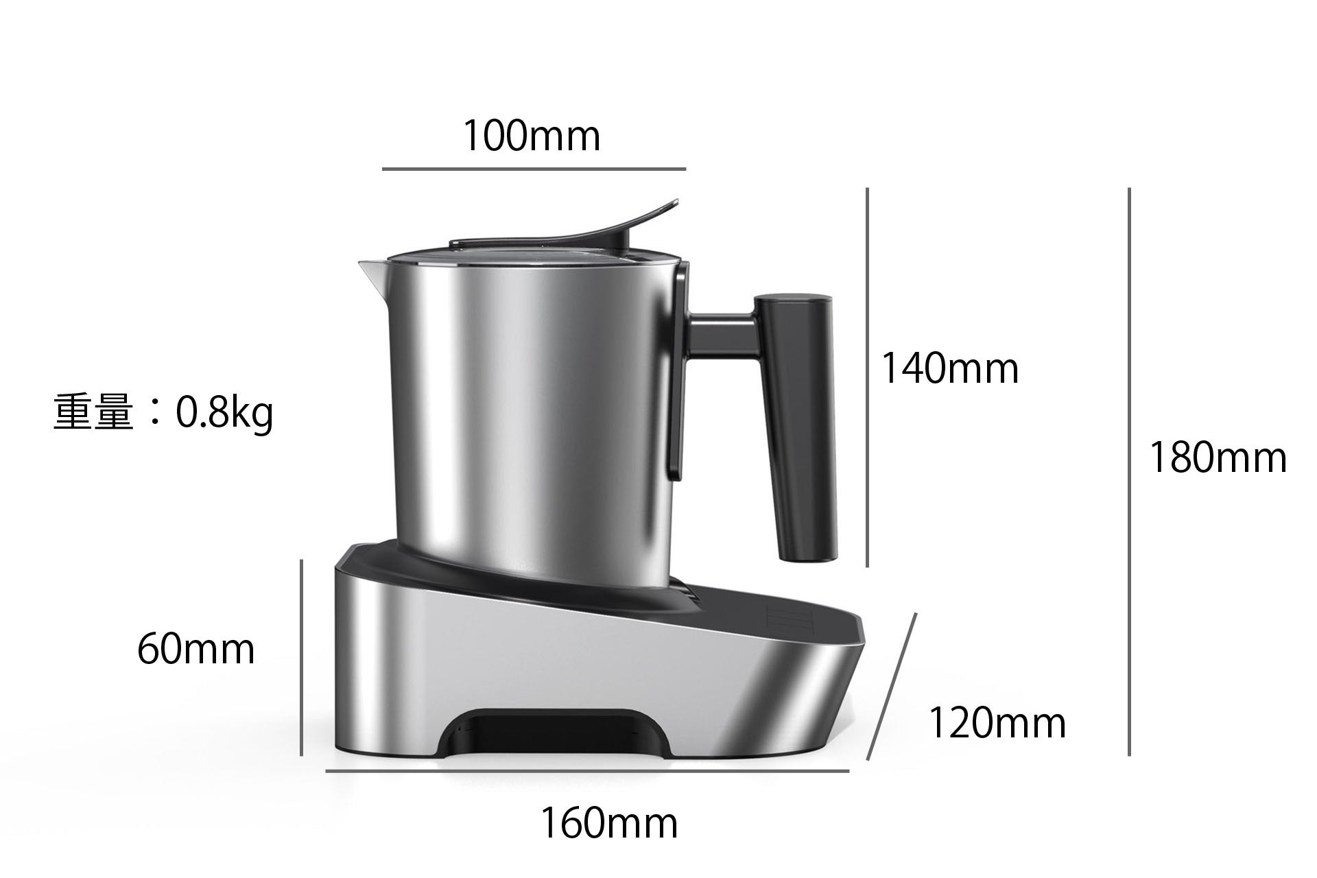 A. 重量は0.8kgです。各部品のサイズは製品仕様を御覧ください。