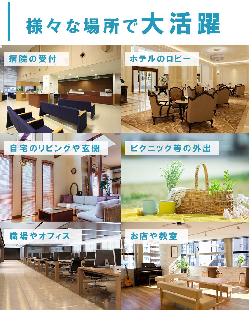 持ち運びもしやすいので、室内だけではなく、外出先でも使えます。
