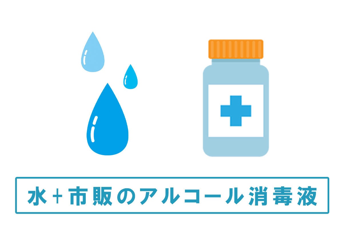 A:はい、一般的に市販されているアルコール消毒液を水と3:1の割合で薄めてお使いいただけます。