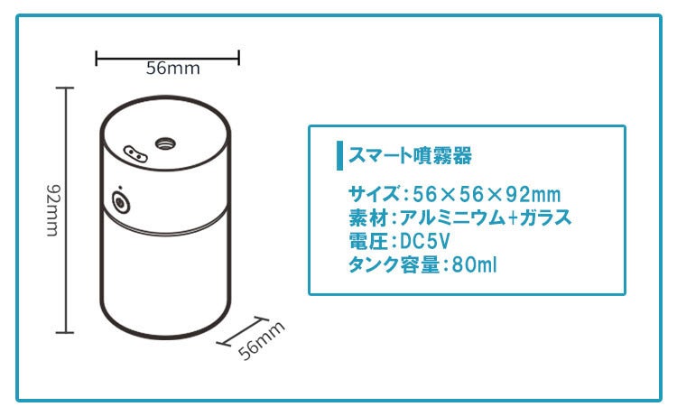 幅56mm、奥行き56mm、高さ92mmのコンパクト設計でどこに置いても邪魔になりません。