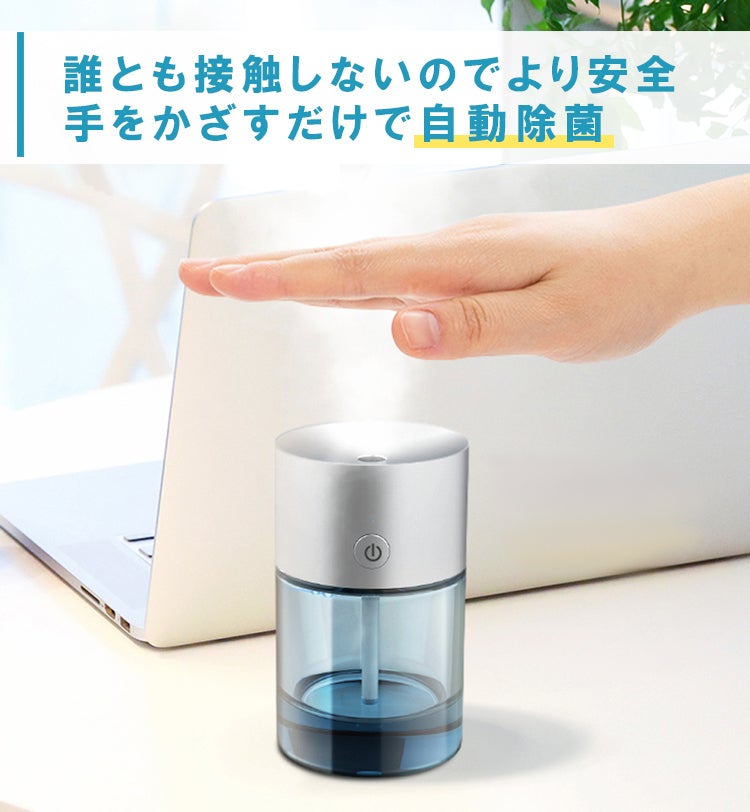 今回ご提案するのは手で直接触れずに、手をかざすだけでセンサーが反応し自動的に消毒液を噴霧してくれる商品です。