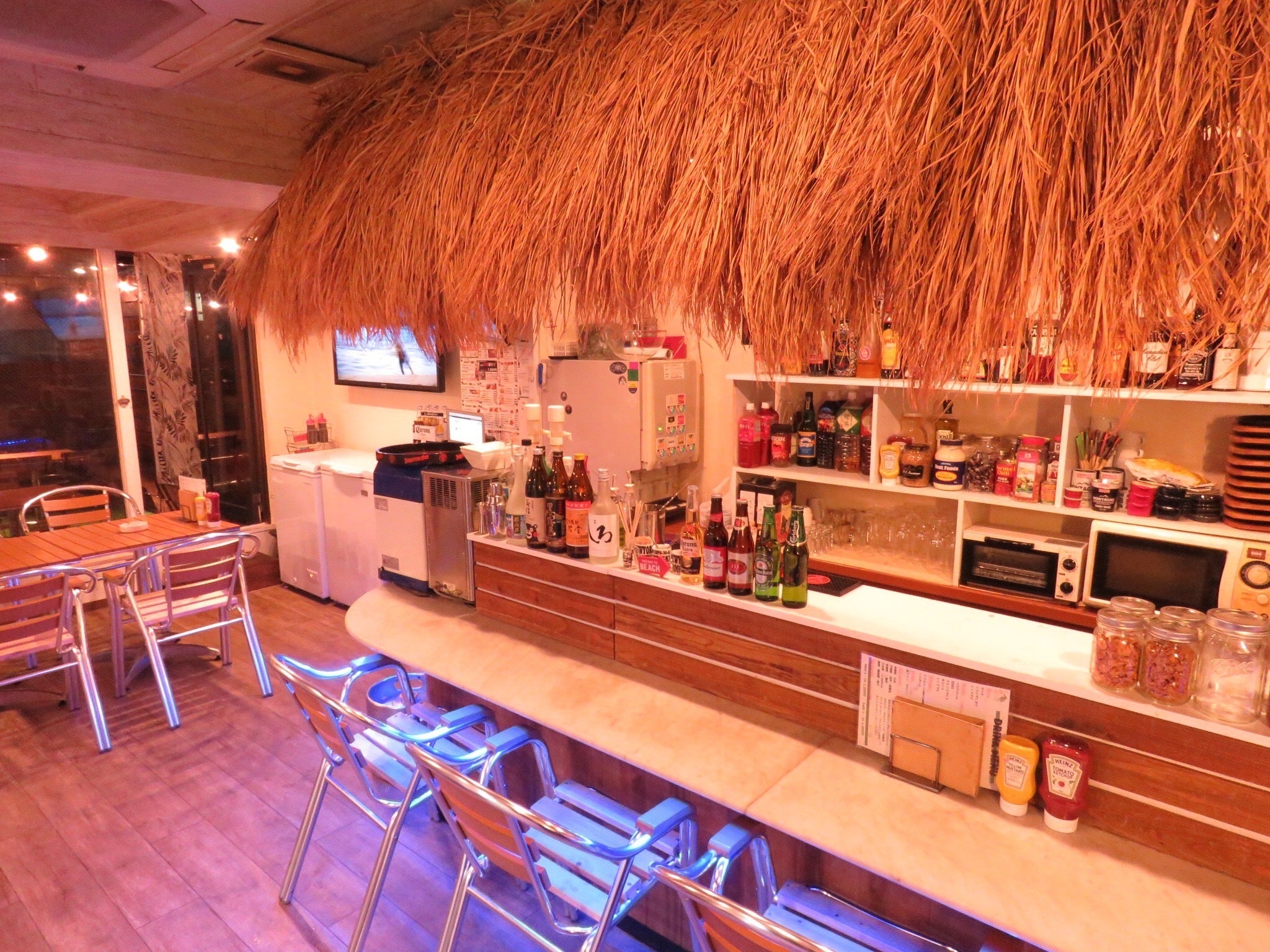 当店はバーベキューを強みとしたアメリカンダイナーです。扉を開けば南国を感じさせるデザイン。