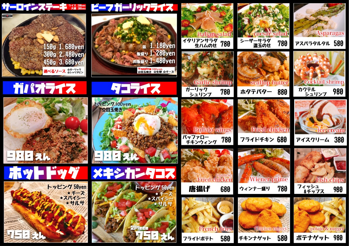 アメリカンジャンクフードメニュー