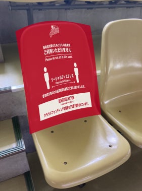 クラウドファンディング第1弾決定!!今回のクラウドファンディングで皆様に安心して来場いただけるための施策の第1弾が決定いたしました!〜 ソーシャルディスタンス用座席装飾 〜会場の自由席部分にお客様同士のソーシャルディスタンスを保つため座席にビニール状の装飾を行います!会場の自由席に1席間隔(市松模様)で装飾を行う事で会場全体をクラブカラーに染めることができます!ぜひ、ご支援をよろしくお願い致します。