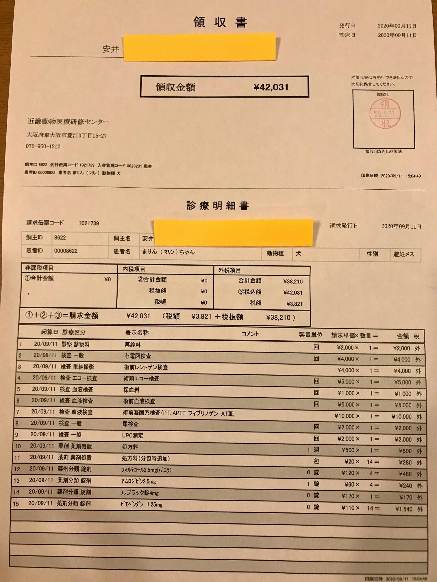 今日は術前検査をして頂きました。腎臓の数値が前回よりも高かったですが許容範囲という事、他に手術が出来ない病気もなかったので、予定通り9月17日(木)10時頃から手術をして頂く事になります。ただ、今日の検査で肝臓とひ臓にイボのような物が見つかったそうで、悪い物では無さそうとの事ですがとても心配です。今は心臓の手術が無事に成功し、まりんが元気になる事だけを考えないといけないのですが…。