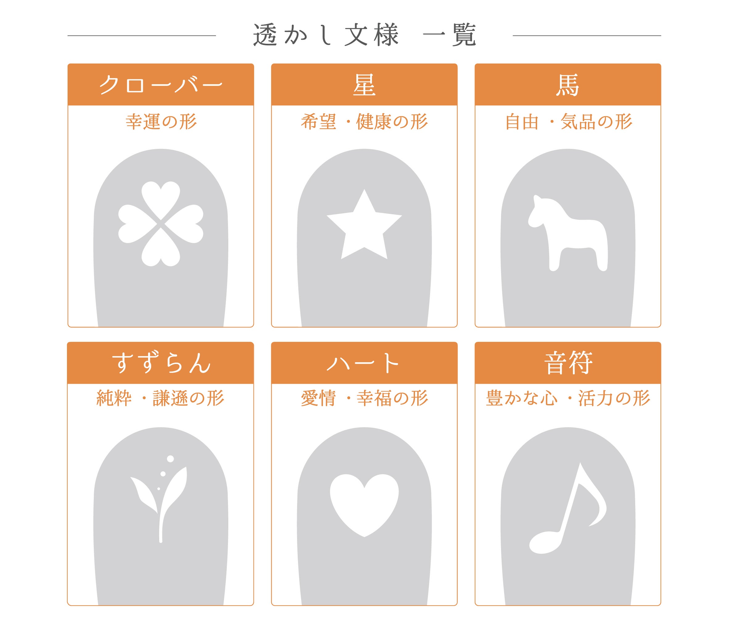 ・透かし文様は6種類の中からお好きな絵柄をお選びいただけます