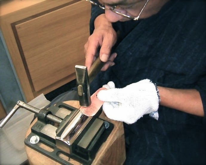 一連の制作風景をご覧いただける動画を作成しました。金槌が金属にあたる時に鳴る"心地よい鍛金特有の音"をぜひお楽しみください。