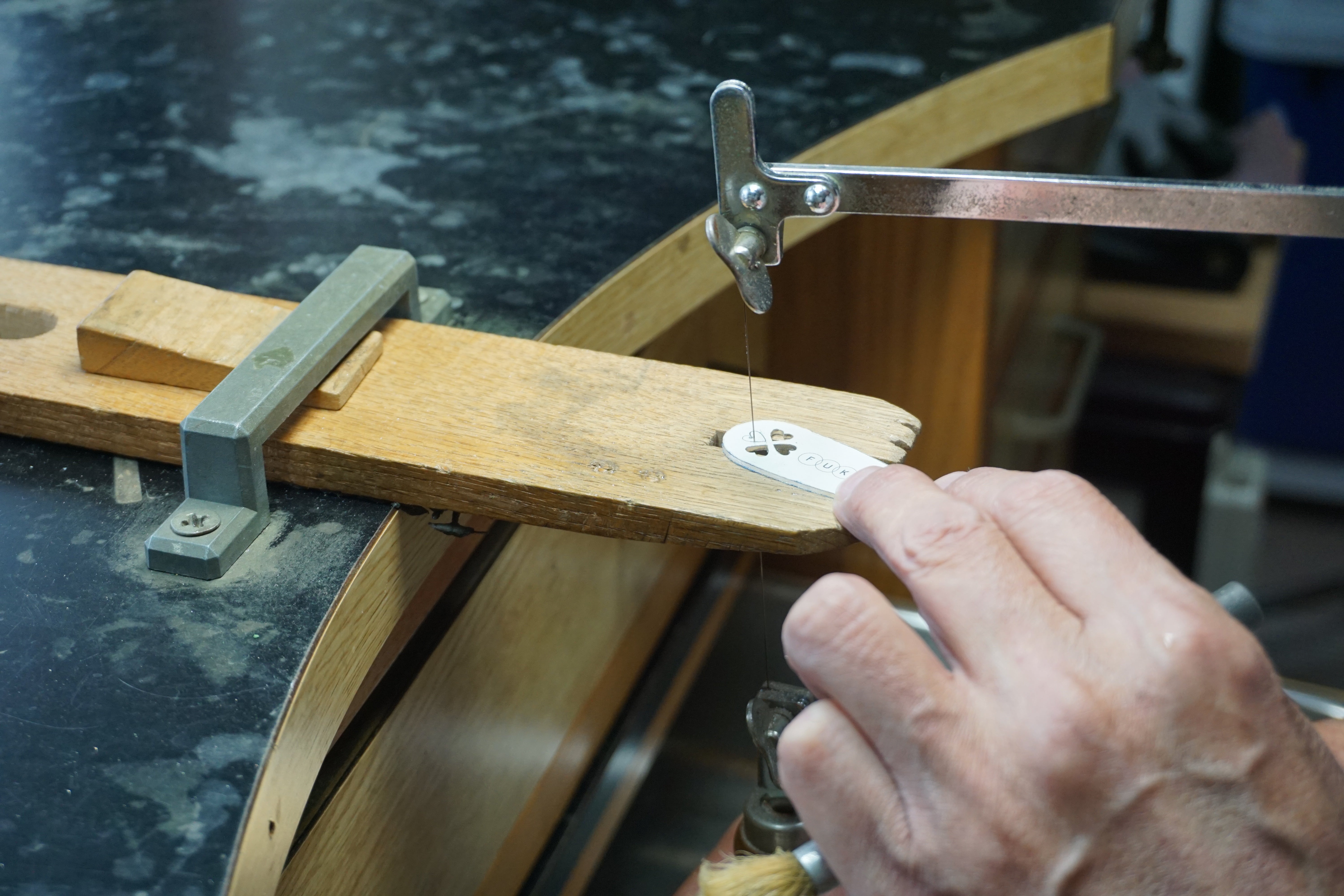 『ふくふく』の持ち手部分には、職人が糸鋸で丁寧に切り抜いた透かし文様が施されています。