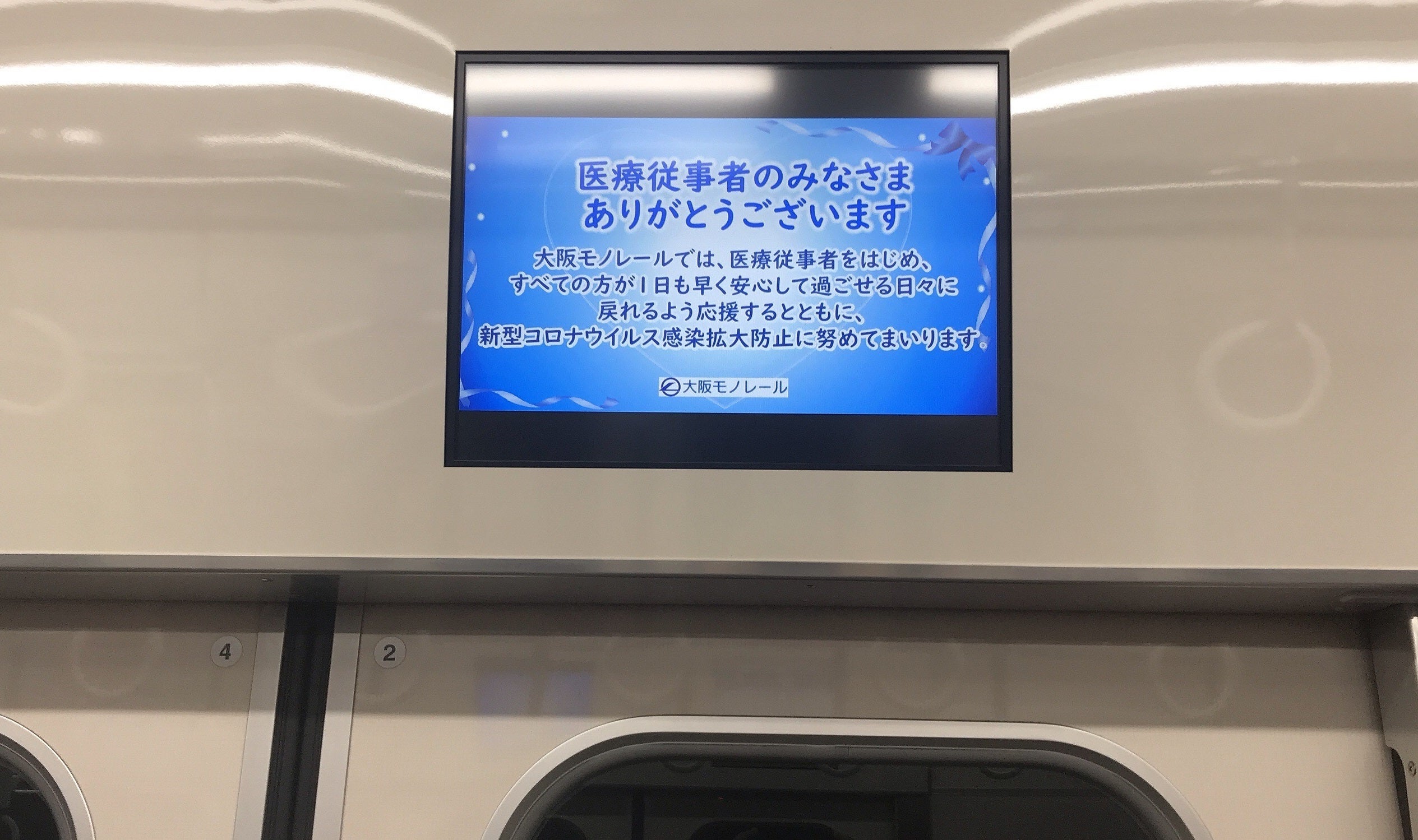 大阪モノレールでは、医療従事者をはじめ、すべての方が一日でも早く安心して過ごせる日常に戻れることを願い、新型コロナウイルス感染拡大防止に努めております。