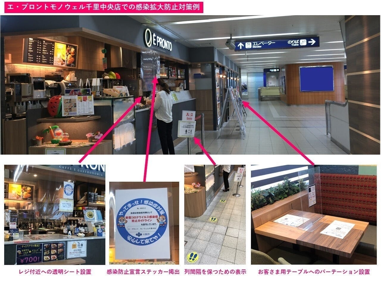兼業部門での感染拡大防止対策例(画像はカフェ「エ・プロントモノウェル千里中央店」)【大阪モノレール公式リンク】